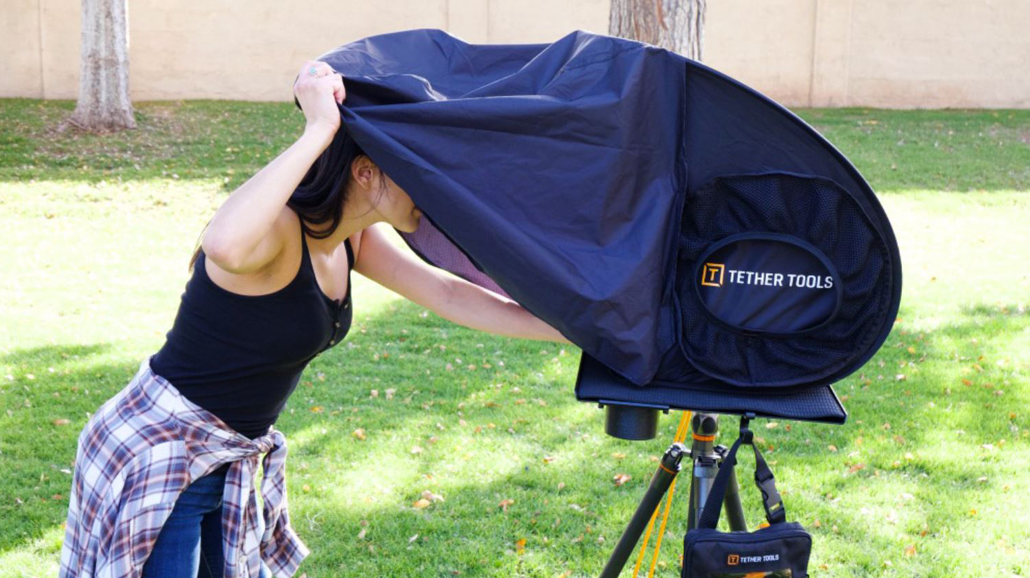 Занадто багато сонячного світла ускладнює перегляд фотографій на ноутбуці, планшеті чи моніторі. Aero Sunshade забезпечує темну зону огляду, якщо ви знаходитесь на місці. Крім того, козирок Aero можна легко закріпити на столі Aero Tether або багатьох інших платформах за допомогою вбудованого роз’єму Secure Strap. Потрібно заблокувати все сонячне світло? Вбудований капюшон забезпечує повну конфіденційність, повне блокування світла та захист від природних елементів, таких як пил і пісок, в екстремальних місцях або в складних погодних умовах. Aero Sunshade складається і самозакріплюється у власній сумці, а також має ручку для легкого транспортування та зберігання. Не виходьте на локацію без нього!