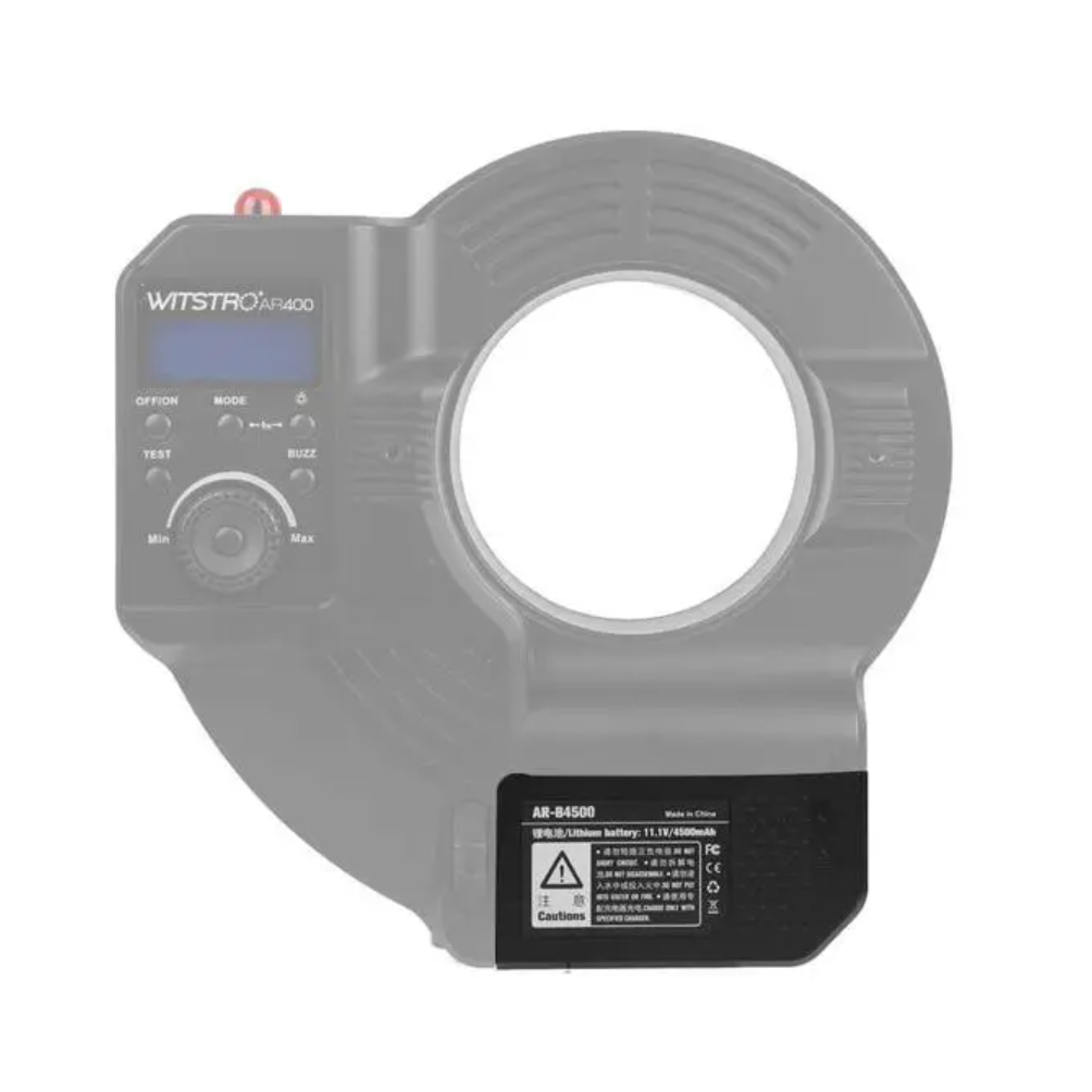 Акумуляторна батарея AR-B4500 від Godox призначена для кільцевої спалаху AR-400. Ємність 4500 мАч, напруга 12,6 Ст. Кріпиться в спалах справа на ліво з допомогою додаткових виступів, фіксується за допомогою перемикача Push Open.