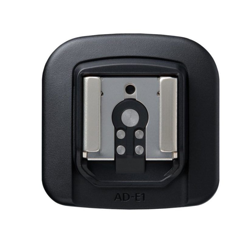 AD-E1 — це адаптер для багатофункціональної колодки, який дозволяє встановлювати традиційні високошвидкісні спалахи Speedlite із захищеною від погодних умов основою на камери з багатофункціональною колодкою.