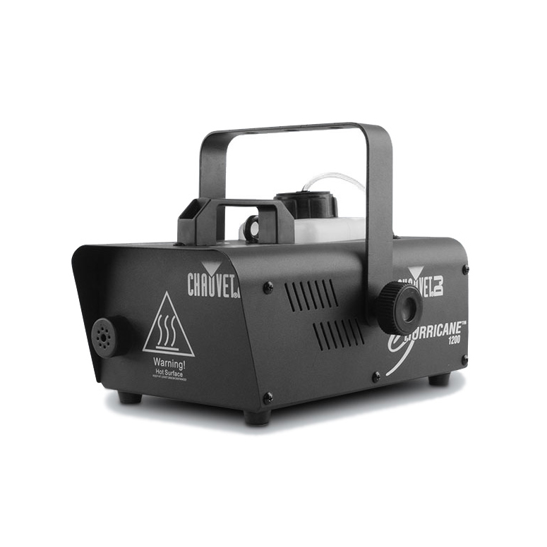 CHAUVET-DJ Hurricane 1200 – це генератор диму. Пристрій представлений у серії компактних, підлогових генераторів, здатних викидати щільний струмінь білого, щільного диму. Генератор диму Hurricane 1200 має короткий час нагріву – 2 хв. Живлення пристрій отримує від стандартної розетки електричного живлення (230 В. 50 Гц), споживання енергії не більше 1180 Вт. Генератор оснащений контролером FC-Т (у комплекті постачання). Місткість бака для рідини – 1 л. Продуктивність генератора 509 м3/хв., витрата рідини – 28 мл/хв. Розміри генератора становлять 286 мм. х 235 мм. х 209мм., вага – 2,9 кг.