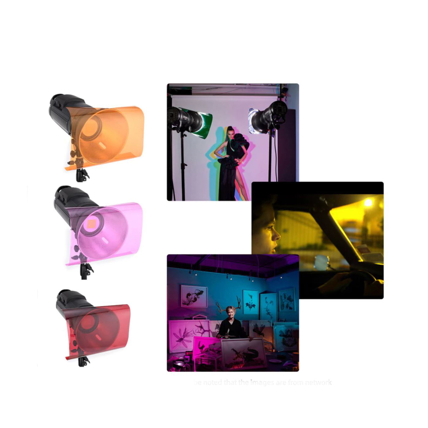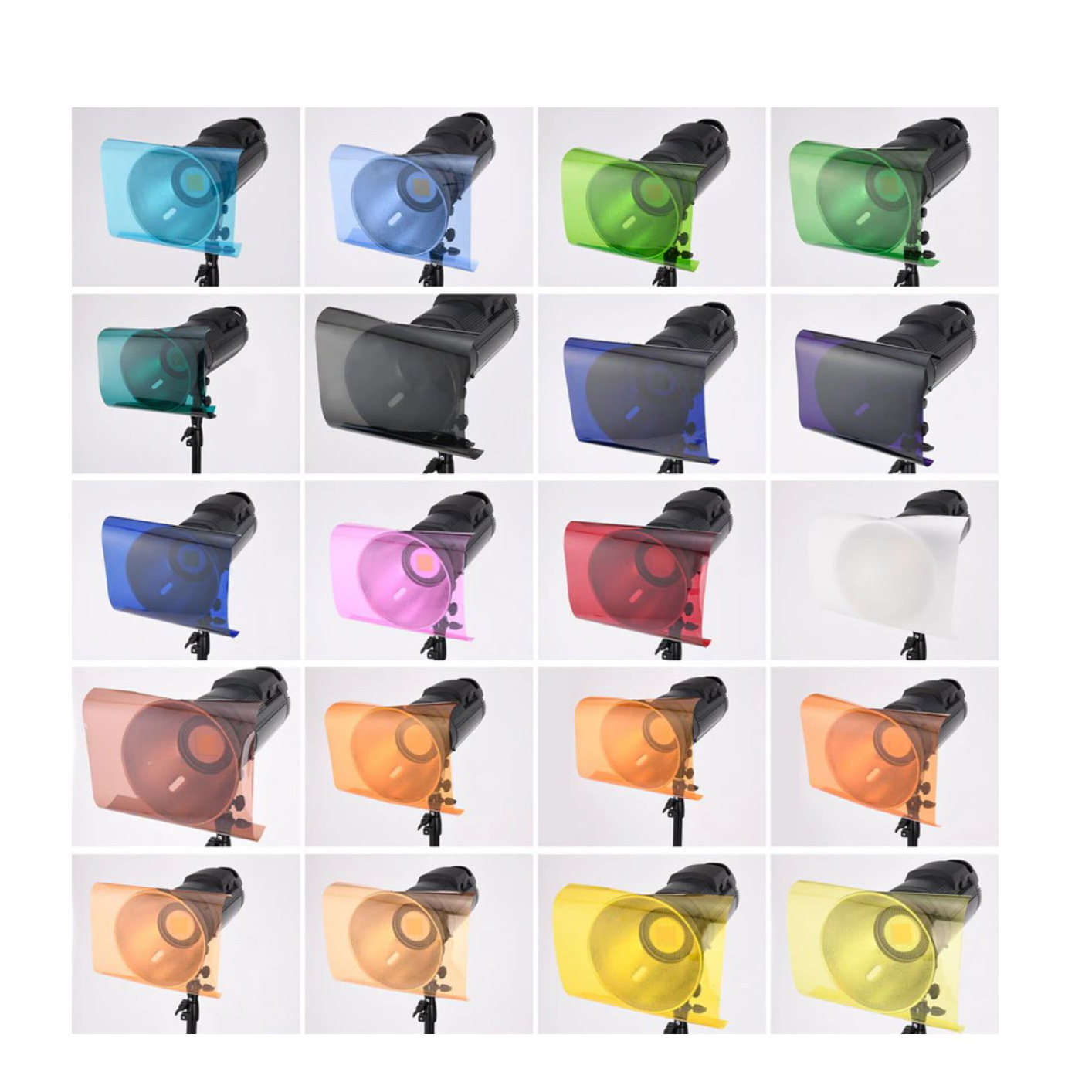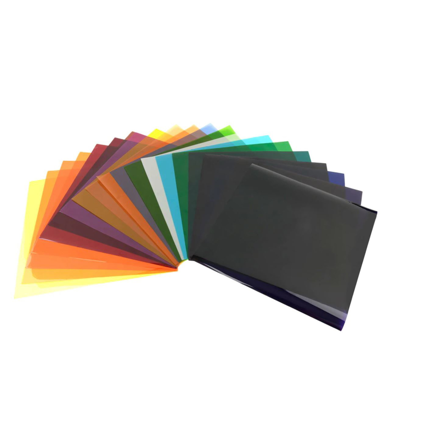 20 прозорих кольорових аркушів розміром 25×25 см – 20 різних кольорів можна комбінувати для створення різних ефектів, які відповідають усім, що вам потрібно. Кольорові фільтри можна використовувати різними способами, щоб забезпечити найкращий фотографічний ефект і надихнути вашу творчість у фотографії.