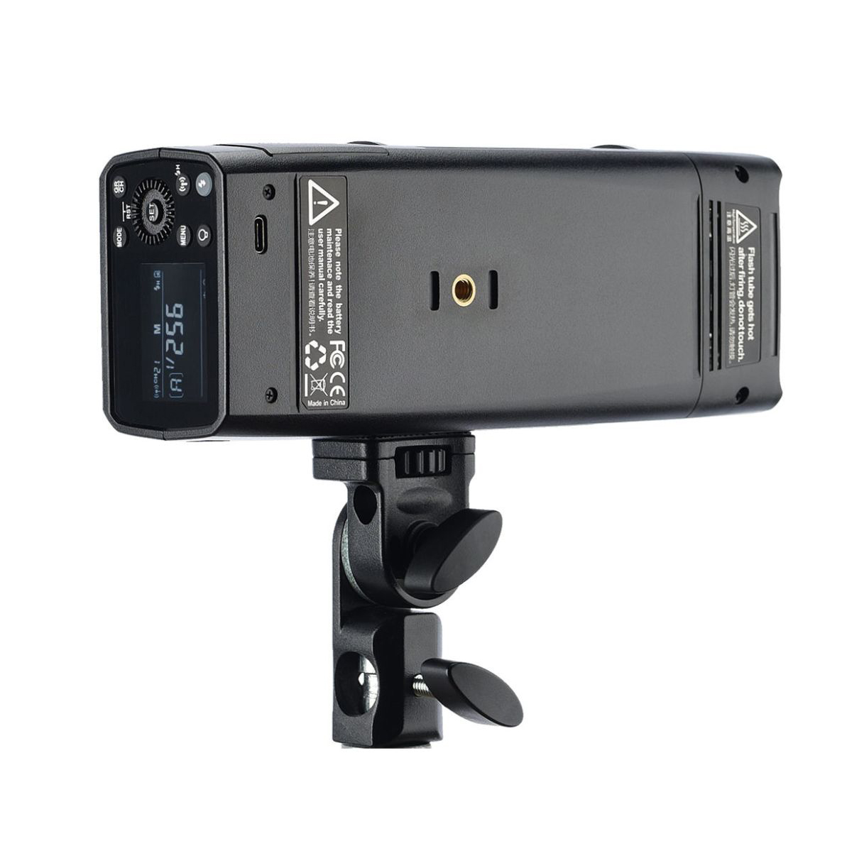 У комплекті зі спалахом поставляється поворотне кріплення для установки спалах на студійну стійку. Надійний металевий тримач дозволяє плавно регулювати кут нахилу спалаху. У тримачі є отвір для установки парасольки. Спеціальні отвори на корпусі спалаху служать для точного позиціонування власника, а зручні рукоятки допоможуть швидко і надійно зафіксувати положення.
