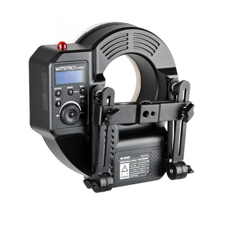 - AR400 вміщує професійний літієвий акумулятор (11,1 В / 4500 мАг) з часом перезавантаження спалаху 0.05-2.8 секунд. Зарядний пристрій входить в комплект поставки, завдяки чому ви можете самі контролювати рівень заряду акумулятора під час всього знімального процесу.