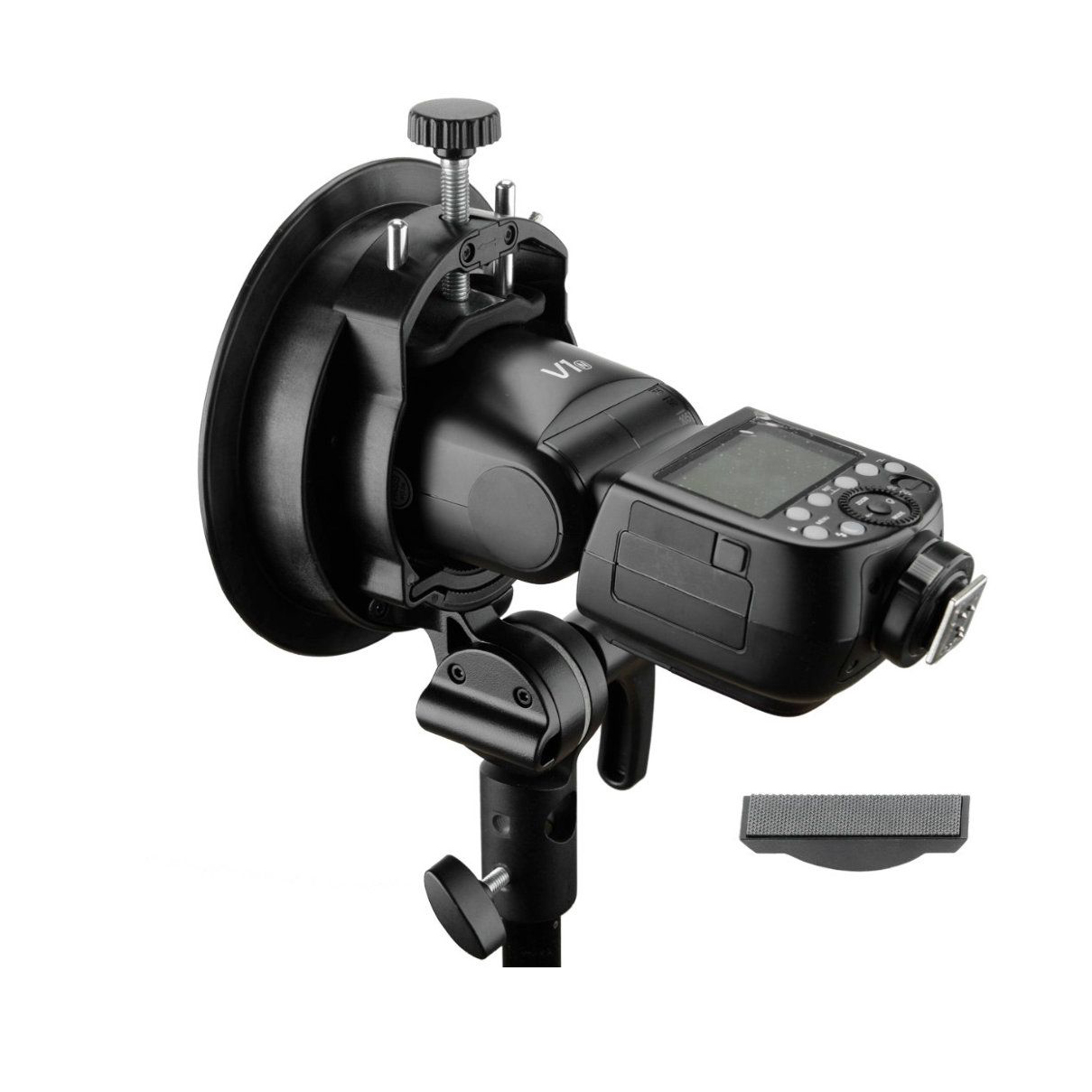 В тримачі перероблений матеріал підстави для установки на стійку – тепер це надійний алюмінієвий сплав. Так само вдосконалений похилий механізм з новою ручкою, який дозволяє плавно і комфортно змінювати положення спалаху навіть з найважчими модифікаторами. Адаптер Godox S2 S-type так само став більш компактним і портативним, ніж оригінальний тримач S-type.
