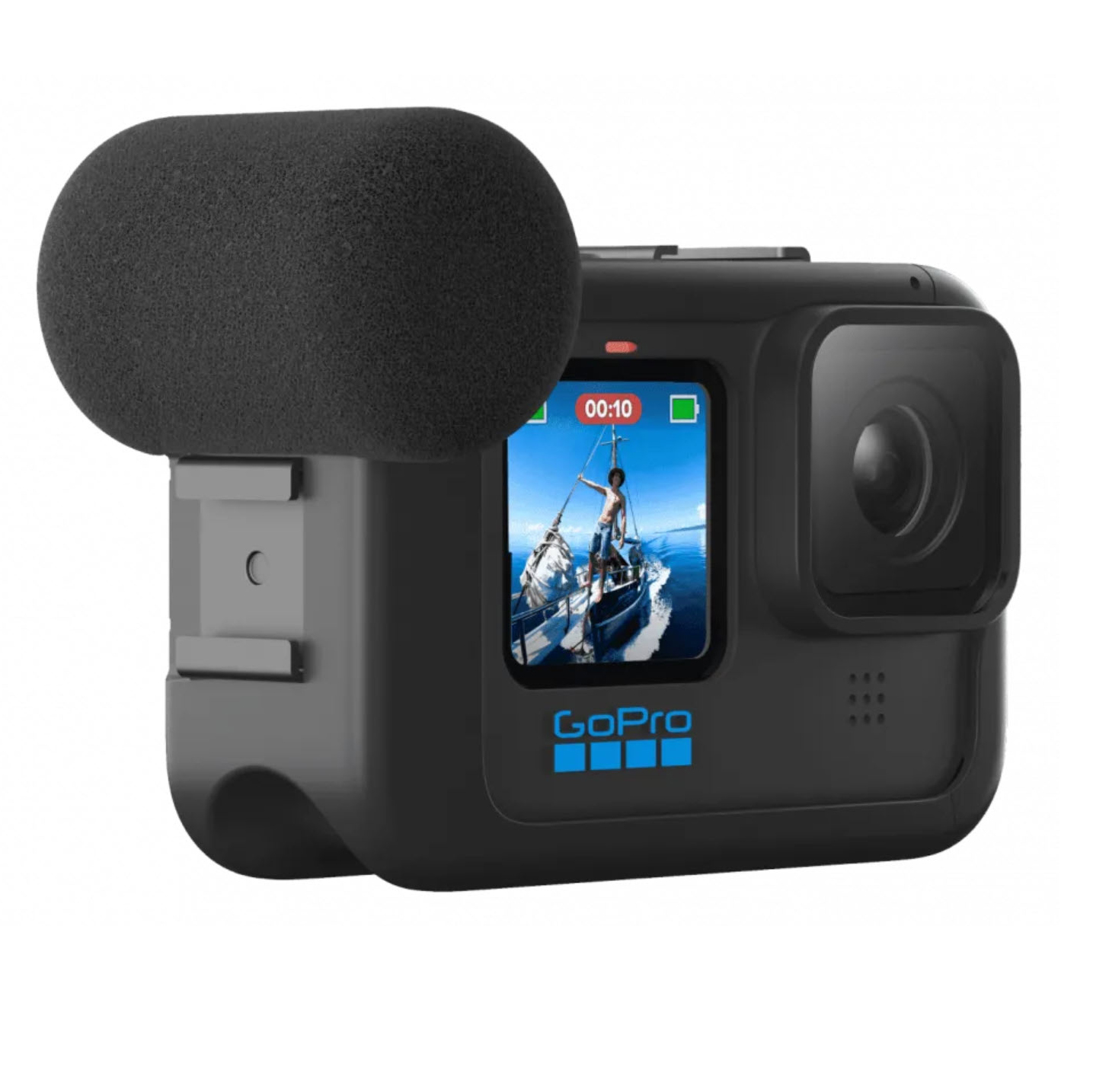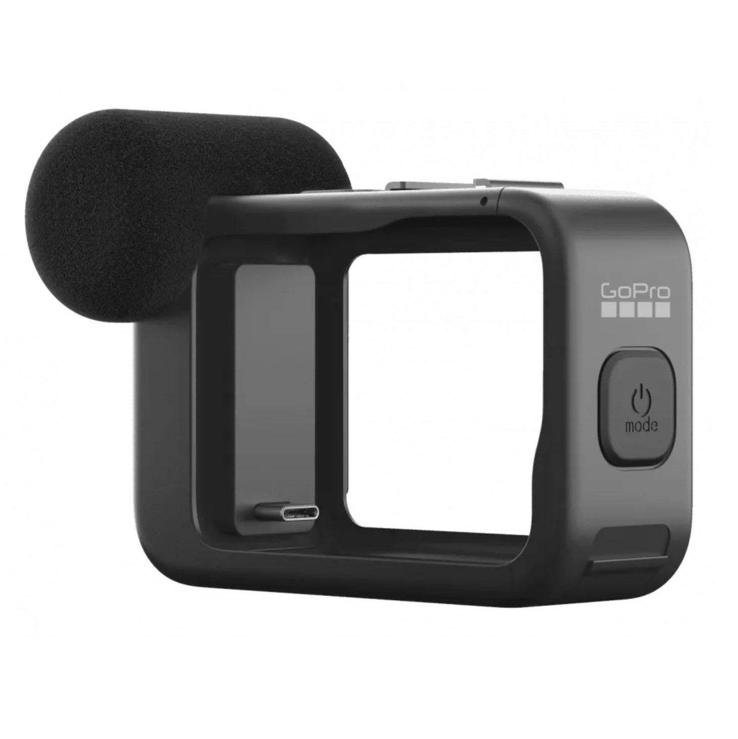 Медіамодуль для GoPro Hero 9, 11, 12 та 13, значно розширює можливості створення відеоблогів, прямих трансляцій, зйомки відео з якісним звуком. Він оснащений вбудованим направленим мікрофоном з активним ветроподавленіем, для більш якісного запису голосу, роз’ємом 3,5 мм, виходом HDMI для перегляду матеріалів на зовнішньому моніторі, а також двома «холодними черевиками» для підключення джерел світла, ЖК-екранів і додаткових мікрофонів. Міцна конструкція цього модуля, стійка до погодних умов, надійно захищає навіть від вітру. Знімна поролонова насадка на мікрофон витримує пориви до 32 км /ч.