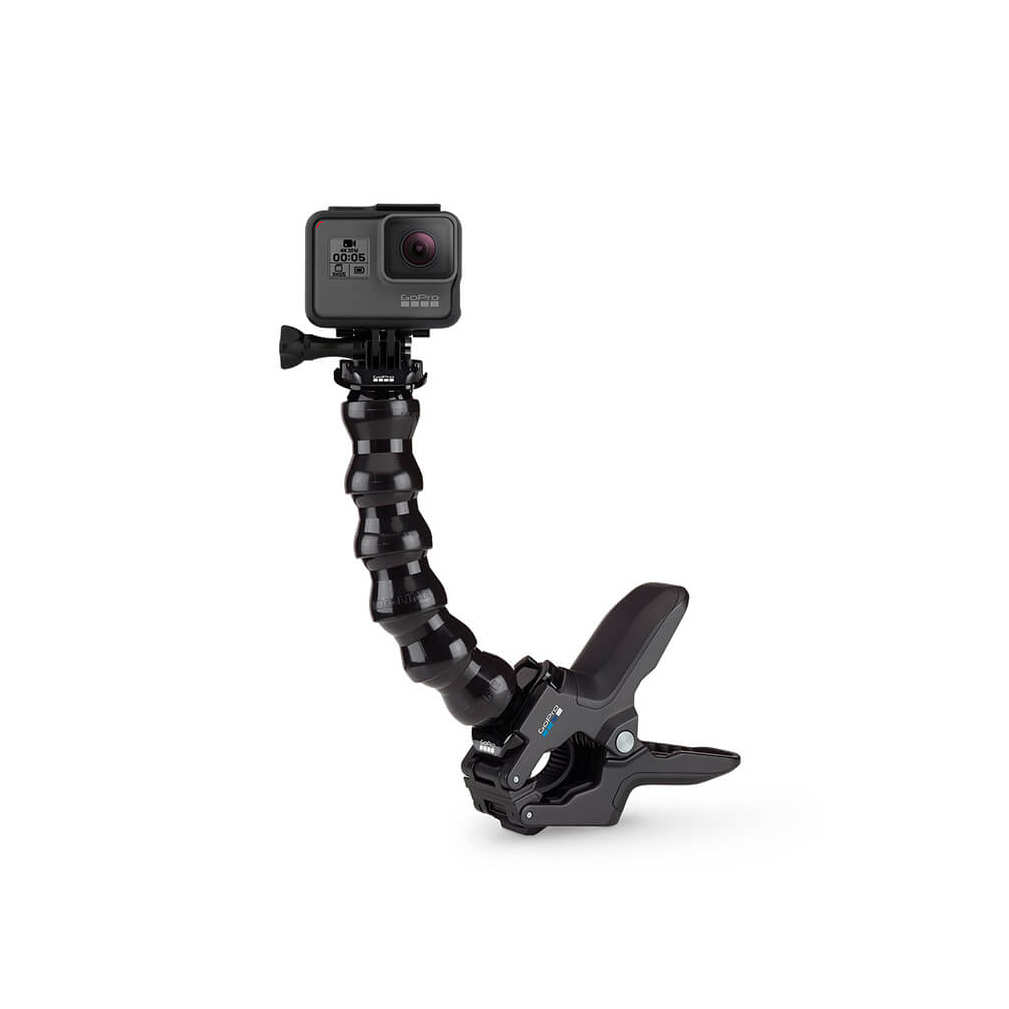 Кріплення-зажим GoPro Jaws: Flex Clamp NEW. Тепер свою камеру GoPro можна прикріпити до будь-яких предметів (0,6 см 5 см), за допомогою «прищіпки». У прищіпки довга шия, яка допомагає отримувати ширококутний ракурс. Щелепи кріплення Jaws Flex Clamp надійно захоплюють предмети неправильної форми, труби, плоскі поверхні, завдяки своєму інноваційному дизайну.