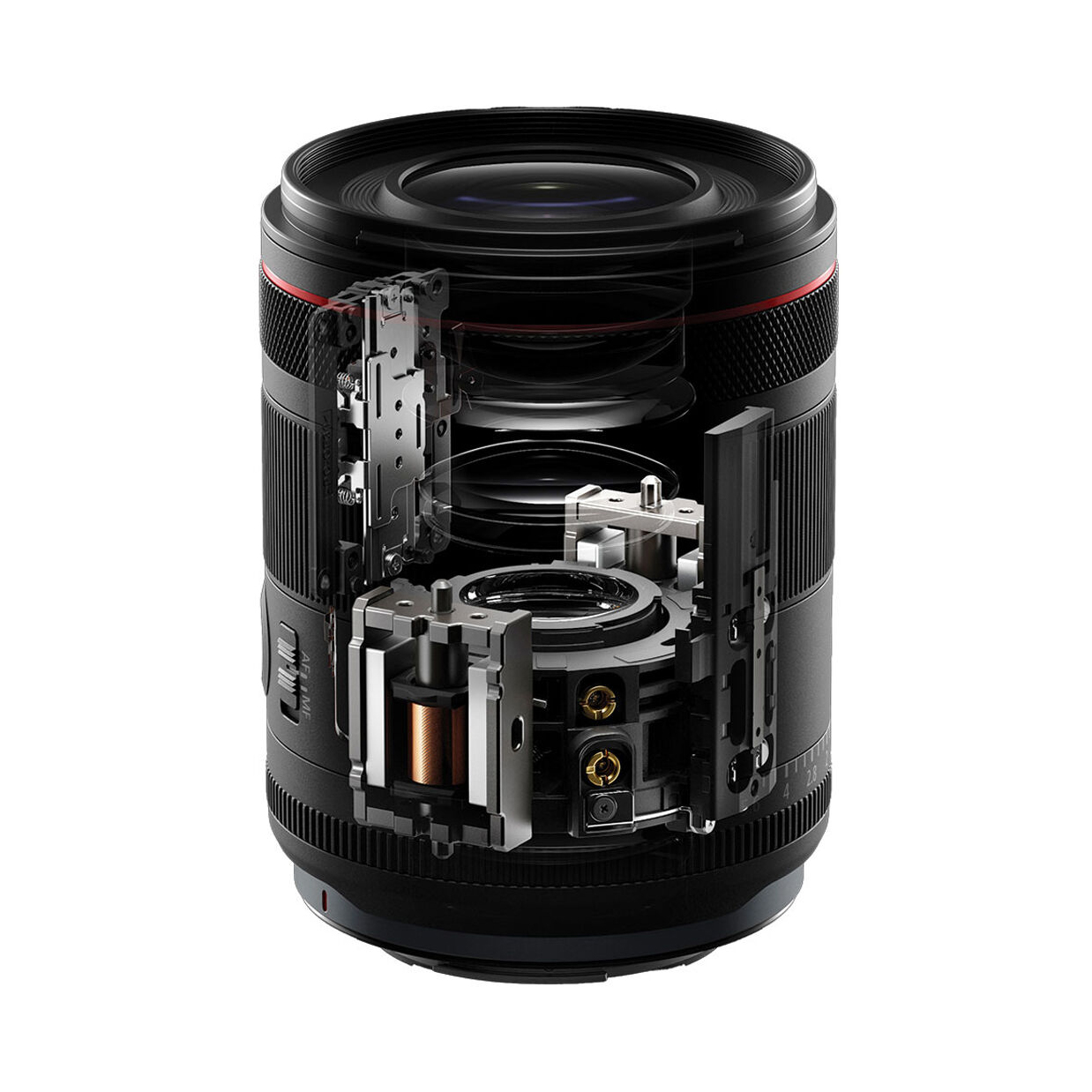 Оптимізований для відео, Nano USM використовується для плаваючого фокусування та двигун звукової котушки (VCM) для заднього фокусування для тихої незалежної або синхронізованої активації на високій швидкості