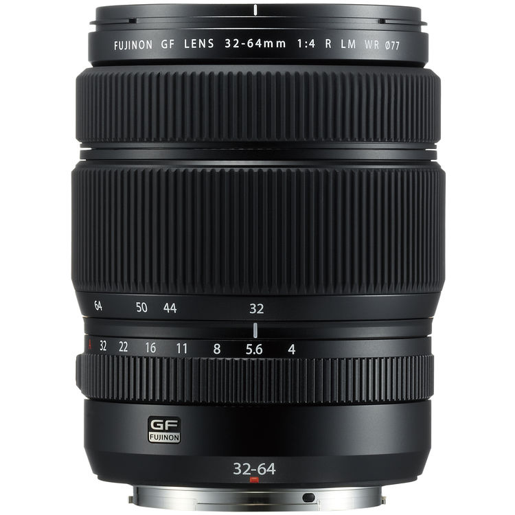 Об’єктив Fujifilm GF 32-64 мм f/4 R LM WR – нормальний зум-об’єктив, спеціально сконструйований під новий байонет G Mount та матрицю 43,8 x 32,9 мм. Лінійка об’єктивів GF, яким під силу роздільна здатність до 100 млн пікселів, поєднує новітні технології з великим ноу-хау, накопиченим при виробництві об’єктивів XF, для забезпечення максимально високої якості знімків та повної реалізації потенціалу нової середньоформатної бездзеркальної камери GFX 50S. Інтуїтивне керування включає положення на кільці діафрагми, що дозволяє встановлювати діафрагму диском управління на корпусі камери. Положення А (АUTO) та С тепер можна блокувати. Всі об’єктиви захищені від атмосферних впливів і пилу і можуть працювати при температурах до -10°C, що дозволяє знімати на відкритому повітрі, ні про що не турбуючись. Латунний байонет покликаний забезпечити міцність з’єднання. Об’єктиви цієї серії мають стати «робочим конем» професіоналів.