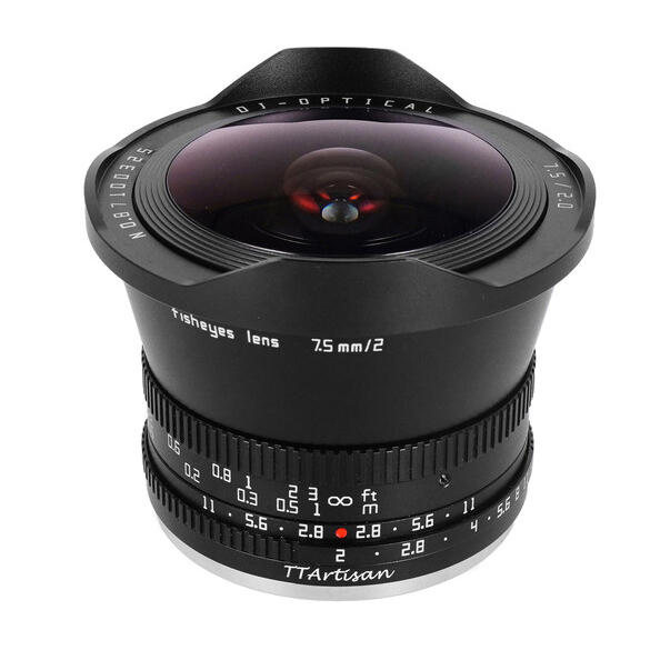 Цей над-ширококутний об’єктив «риб’яче око» 7,5 мм f/2 від TTArtisan — це об’єктив, який заповнює область зображення датчика зображення ASP-C від кута до кута, але також діє як кругле «риб’яче око», якщо використовується на датчику зображення повнокадрового формату. У разі використання на камері з повнокадровим датчиком зображення кругове зображення типу «риб’яче око» сильно віньєтовано в усіх чотирьох кутах. Передня кришка, що входить у комплект, має унікальний дизайн, який трохи обрізається в область зображення, щоб створити повністю кругле зображення з чіткішим периметром. Конструкція об’єктива забезпечує кут огляду 180° для створення виразної візуальної привабливості, яка характеризується драматичними спотвореннями та креативним зображенням простору, що допомагає робити широкі та інноваційні фотографії пейзажів і інтер’єрів. Характерне спотворення «риб’яче око» та близька фокусна відстань 12.5 см також сприяють створенню сюрреалістичних і перебільшених портретів і фотографій великим планом.