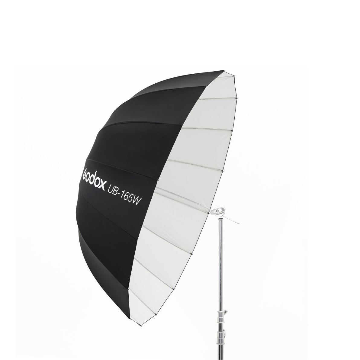 Парасолька параболічна Godox UB-165W біла/чорна 165см є класичним інструментом фотографів, і це не дивно – адже вона зручна в роботі і при транспортуванні. Парасолі забезпечують чудове освітлення. Високоякісні тканини та металеві деталі з обробленою поверхнею, що використовуються для виготовлення парасольок, гарантують багаторічну службу.