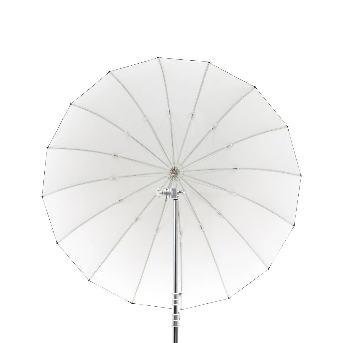 Чудово зручні портативні парасольки з дрібним куполом ідеальні для створення м’якої, широкої світлової плями. Вони легкі, швидко встановлюються та практично не займають місця у складеному стані. Біла парасолька з дрібним куполом дає м’яке, що виглядає природно відбите світло.