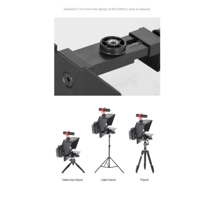 У нижній частині присутній гвинт з різьбою 1/4″, завдяки чому телесуфлер можна встановлювати на штатив або стійку.