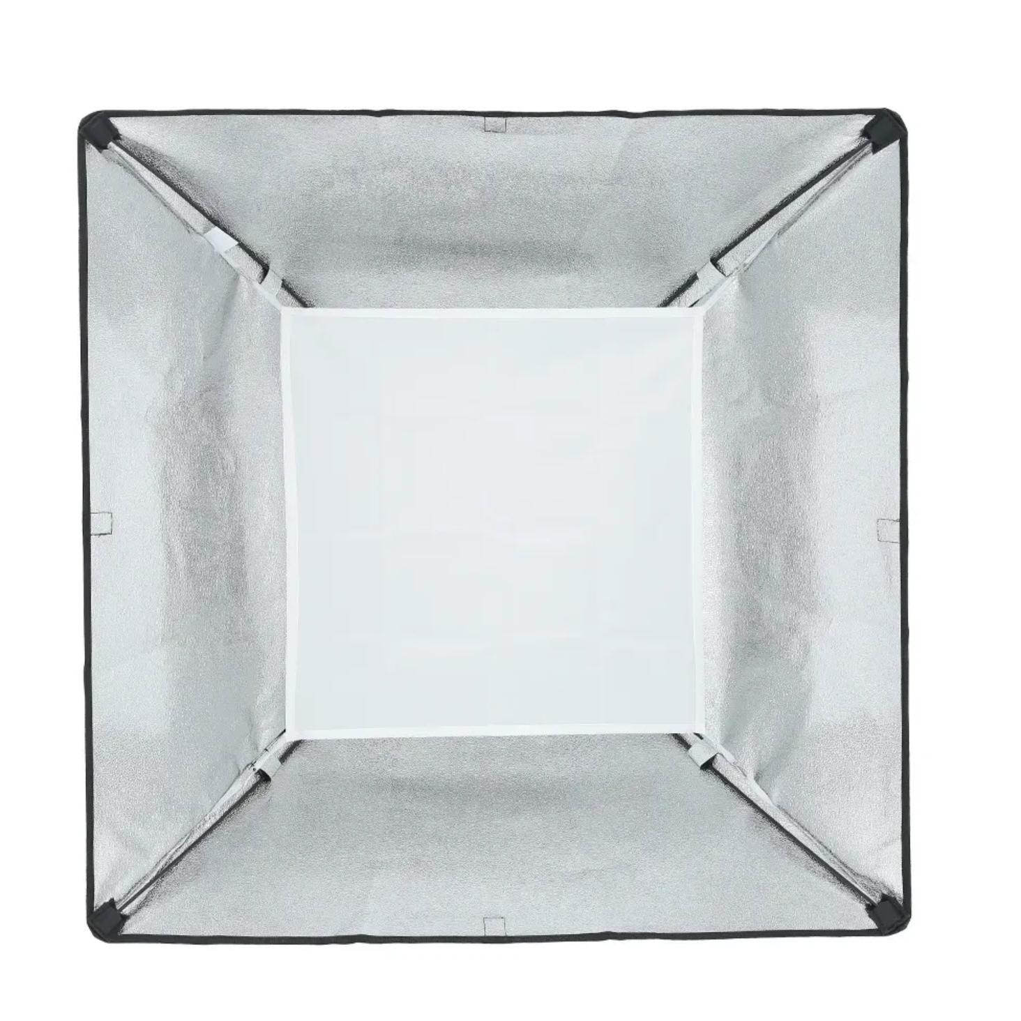 Закрита конструкція виключає паразитні відблиски і втрати світлового потоку. Відбиваюча срібляста поверхня забезпечує рівномірний розподіл світла всередині софтбокса, а білі напівпрозорі тканинні розсіювачі роблять світло більш м’яким.