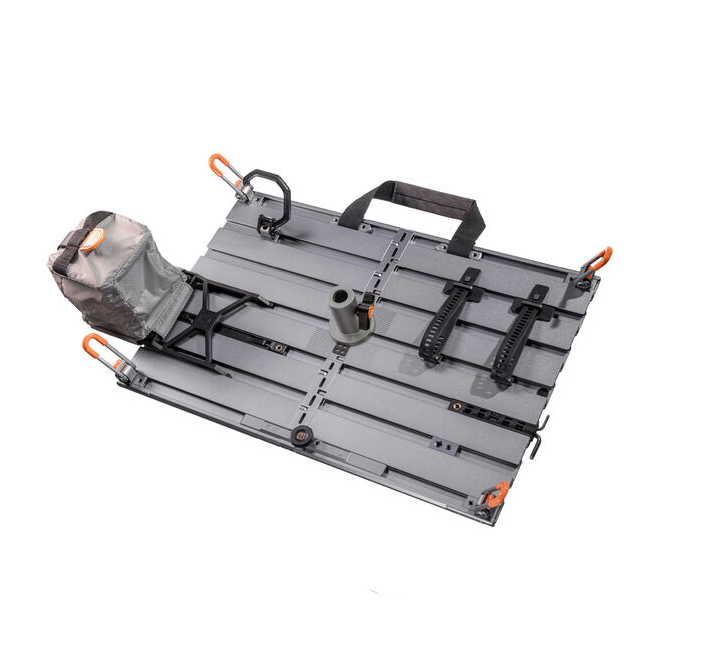 Стіл AeroTrac Workstation Pro Kit від Tether Tools – це складна модульна платформа для робочої станції, що підходить для використання у кіновиробництві та інших творчих сферах. Робоча станція розміром 17 x 11 x 0,35 дюйма складається до 11 x 8,5 x 0,75 дюйма для швидкого налаштування та розбирання. Вона оснащена вбудованими кріпильними рейками для додавання аксесуарів та магнітною системою блокування, яка запобігає випадковому відкриттю платформи під час транспортування. Комплект включає затискачі, ручки, ремінці та гачки для кріплення відеоаксесуарів та обладнання. Встановіть робочу станцію на більшість штативів за допомогою інтерфейсу 1/4″-20 або 3/8″-16 та розширте свої можливості за допомогою адаптера з кульовою головкою, що входить до комплекту. Встановіть платформу як окрему станцію з чотирма ніжками, що входять до комплекту. Коли настане час подорожувати, чохол для перенесення, що входить до комплекту, зробить транспортування легким. Вантажопідйомність 30 фунтів надійно захищає ваше обладнання. Насолоджуйтесь професійною продуктивністю завдяки конструкції з анодованого алюмінію.
