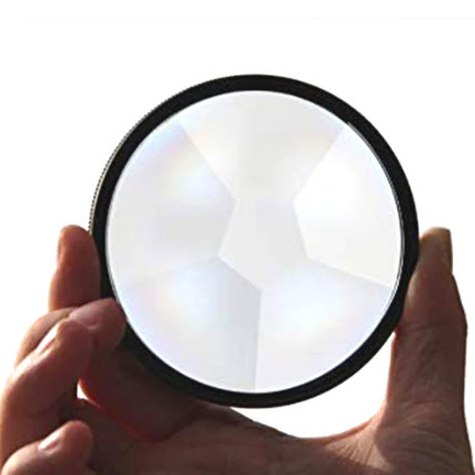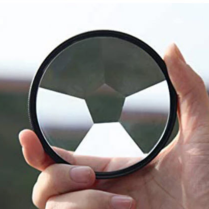 Світлофільтр з ефектом пентапризми 77 мм дублює фотографоване зображення 5 разів. Дозволяє отримати цікаві результати при фотографуванні людей і предметів. Обертаючи світлофільтр, ви можете створити калейдоскопічне відео, не користуючись спеціальними програмами для відеомонтажу.