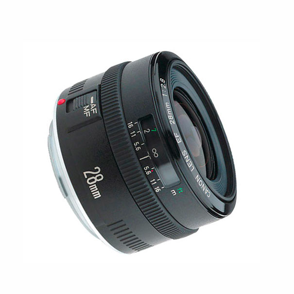 Ширококутний об’єктив Canon EF 28mm f / 2.8 відрізняється невеликою вагою і маленькими габаритами. Це досить прийнятне за ціною і якістю придбання. Зручно розташоване кільце не зачіпає фільтр. Висока якість збірки. Металевий байонет, який гарантує надійне скріплення об’єктива з фотокамерою. У будь-яких умовах цей об’єктив дасть гарантію якісної передачі кольору, глибокої контрастності, вражаючої чіткості. Діаметр об’єктива всього 67,4 мм, його довжина 42,5 мм. Вага «малюка» всього 185 г. При таких показниках цей об’єктив чудово підходить для «екстрених випадків».