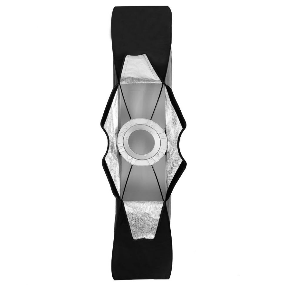 Софтбокси мають сріблясту внутрішню поверхню, оснащені двома тканинними дифузорами – внутрішнім і зовнішнім. У комплект входить решітка сота, яка дозволяє скоротити кут розсіювання світла і зробити світловий потік більш спрямованим і контрольованим. У стандартну поставку, також, входить кріплення для байонета Bowens або Profoto і щільний чохол для зберігання складного софіта.