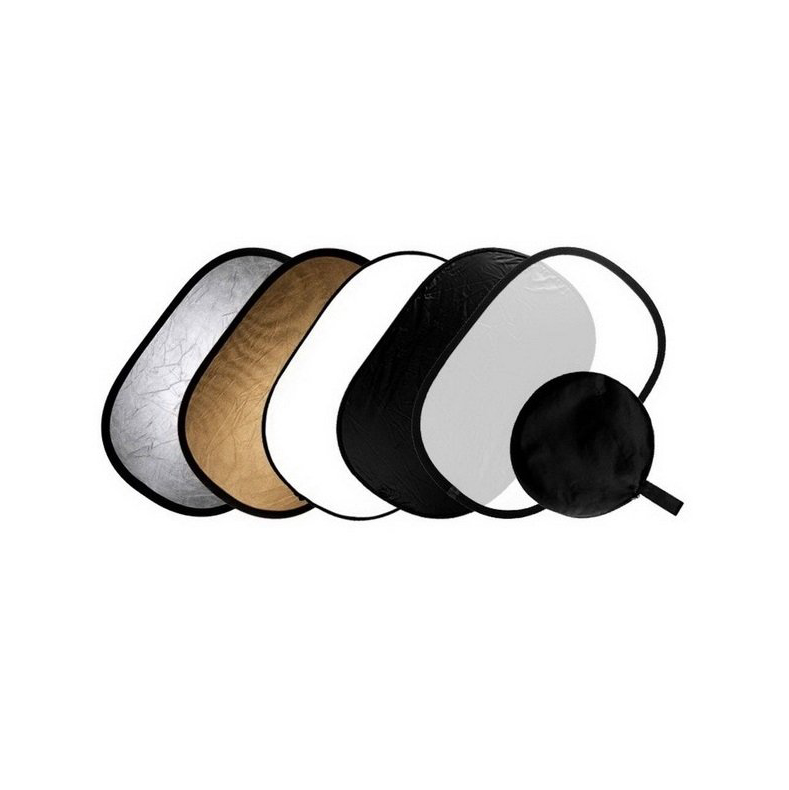 Відбивач для фото складається з підстави, з білою напівпрозорою тканиною на просвіт і чохла, що має чотири різних поверхні, які можна одягати двома парами сторін. Розмір овального відбивача 92х122 см підходить для портретної і предметної зйомки на вулиці або в приміщенні.